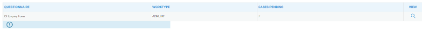 A list of any enquires, along with the work type, and total number of enquiries pending.