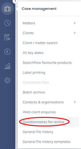 New questionnaires can be accessed from Case management > Questionnaires for review