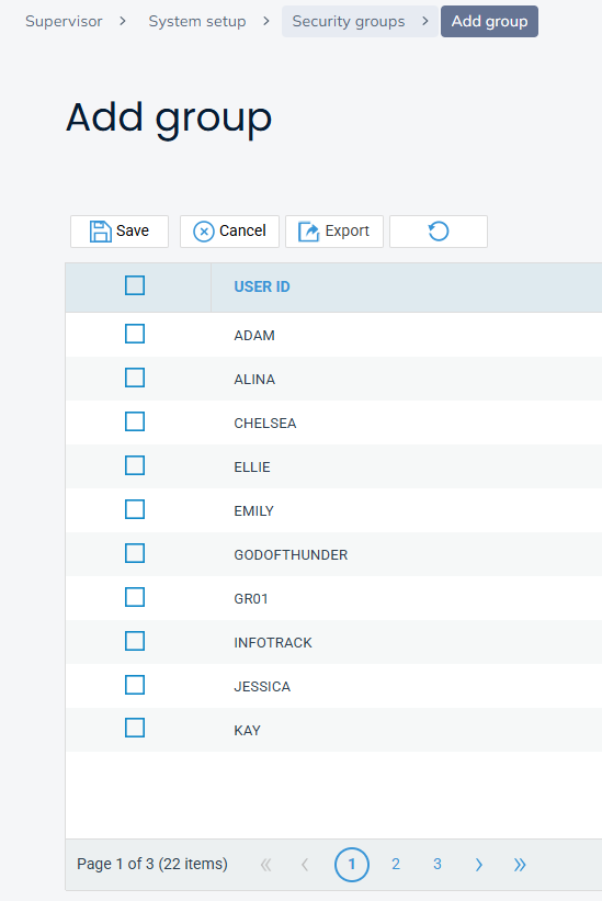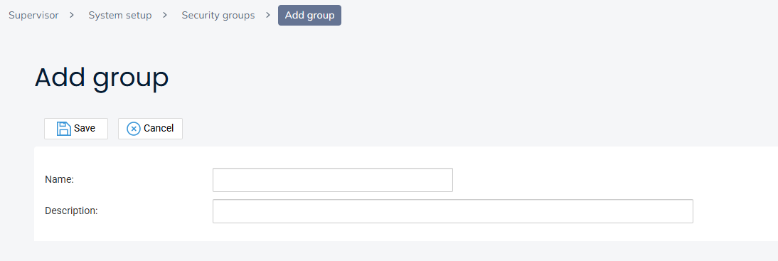 Navigate to Supervisor > System Setup > Security Groups and click on Add Group.