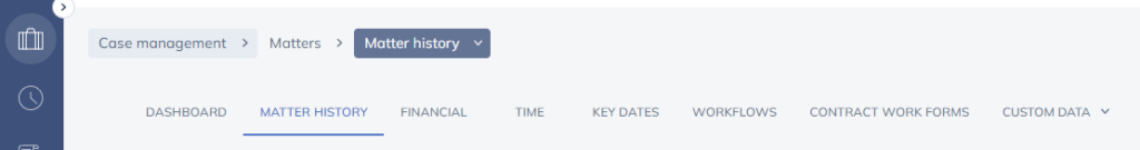 Alternatively, you can click the Case Management icon to open the matter workspace. From there, select the Matter History tab.