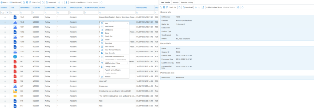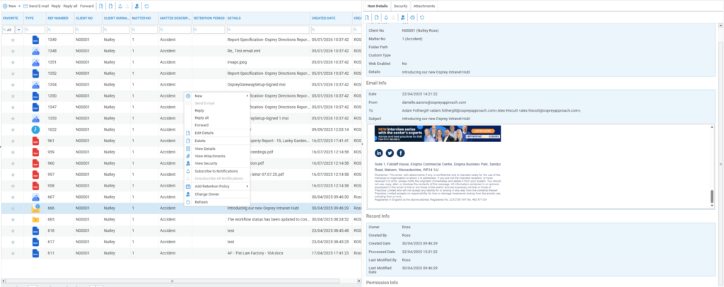 After this is uploaded into Osprey, users are limited in terms of functionality – emails can only be viewed or replied to by downloading the email and opening within Outlook.