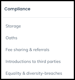 After selecting the ‘New’ button under ‘Fee Sharing & Referrals’, complete all relevant data in respect of the Fee Sharing Arrangement by checking the relevant boxes.