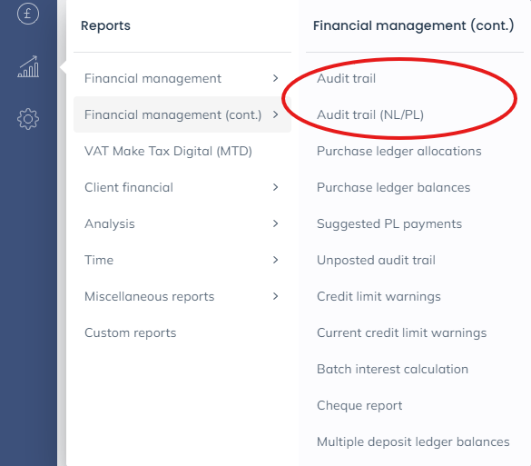 This report will list the transactions posted to the Nominal and Purchase Ledgers as well as Client depending on the filters set.