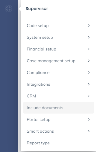 Once your header or footer document is saved locally, go to Supervisor > Include Documents.