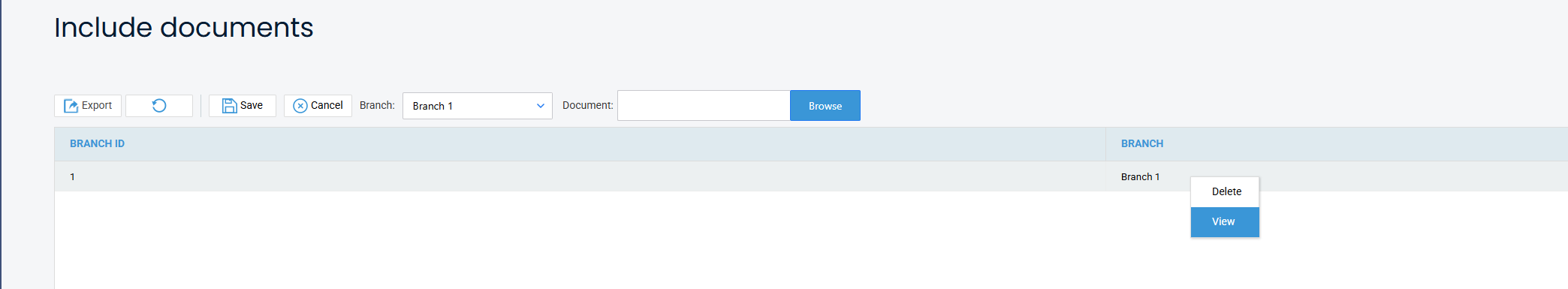 To download a copy of the existing Include Document, right-click on the relevant branch, and select View.
