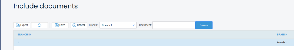To overwrite the Include Document, select the branch you wish to overwrite in the top section of the screen, then browse to the folder that has your new header document in it. Select the document, and then click Save.
