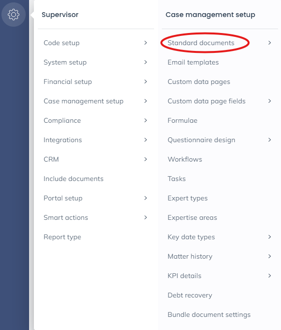 Navigate to Supervisor > Case Management Setup > Standard Documents area to bring up a list of all available documents on the system.