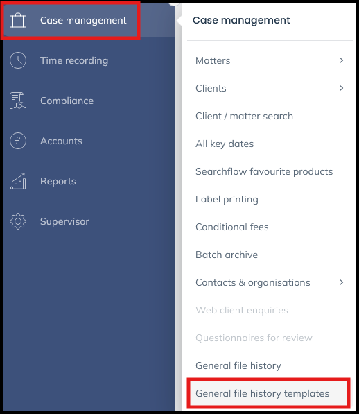 The General File History is where you can add internal documentation that are not client related, for example, Staff Holiday Requests or your own Health & Safety Procedures